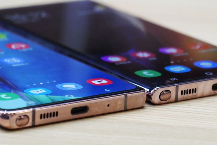 在屏幕形态上,三星Note20采用了更为常见的直屏,而三星Note20 Ultra为曲面屏。两者的边框都收缩到很窄,左右上三边框基本等宽,下巴宽度控制得也相当令人满意,视觉沉浸感非常好。