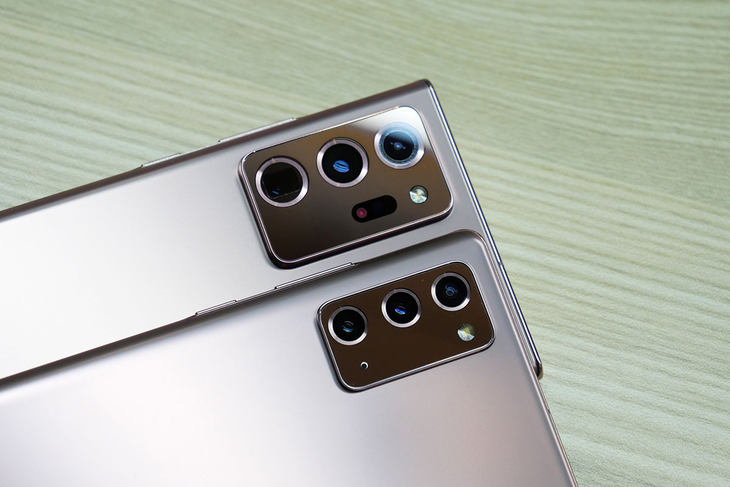 三星Note20 Ultra整体尺寸比三星Note20更大,因为后置采用不同规格的镜头,整个摄像头模组面积更厚大一些,相对来说三星Note20的后置摄像头模组看起来更加和谐。