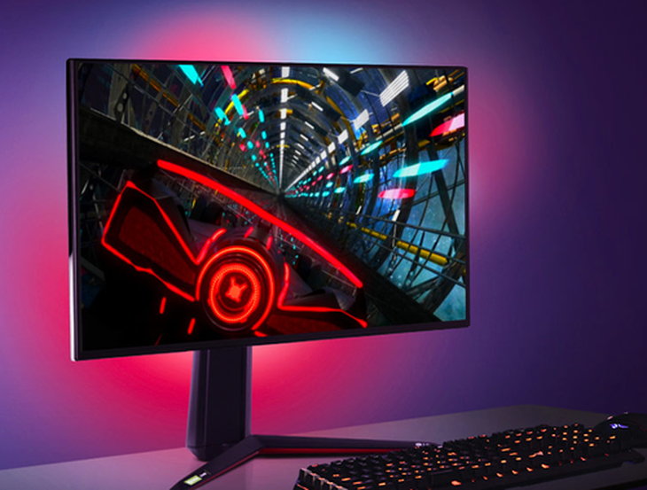 光看参数就能看出这是旗舰级显示器。采用三面微边框设计搭配机械感强烈的V型底座,屏幕支持旋转、升降以及多角度倾斜调节,显示器后背设计了RGB灯光,具有两种新的灯光效果同步模式,一种是根据游戏音频效果来同步灯效,另一种是根据当前视频画面内容同步灯效。