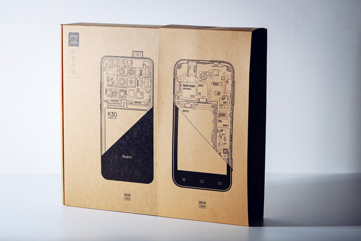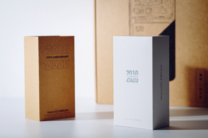 此次送测的Redmi K30至尊纪念版在包装上也非常有看点,首先在包装外有一个封皮,是当年小米领先代手机的包装设计,而手机包装盒上的Redmi K30至尊纪念版则是采用了小米领先代包装一样的设计风格,同时包装也都是当年小米经典的牛皮纸。