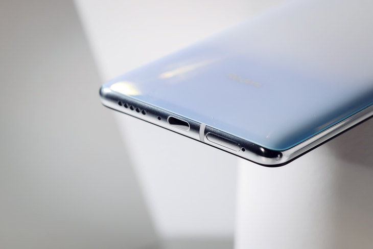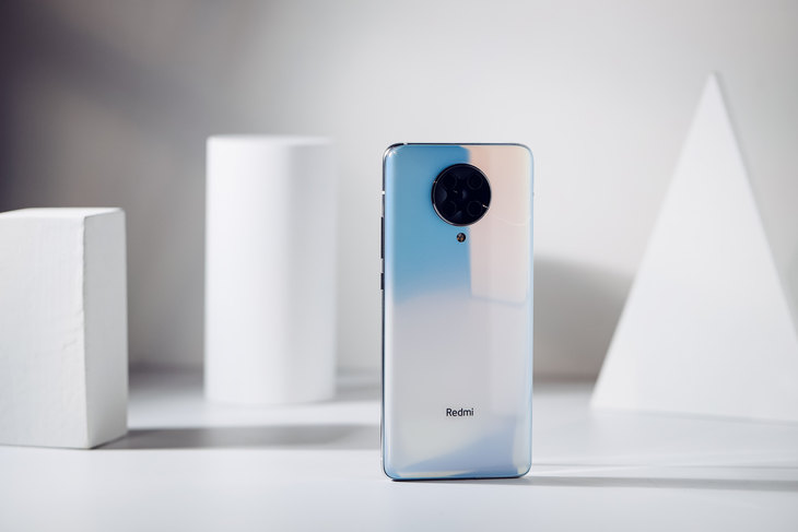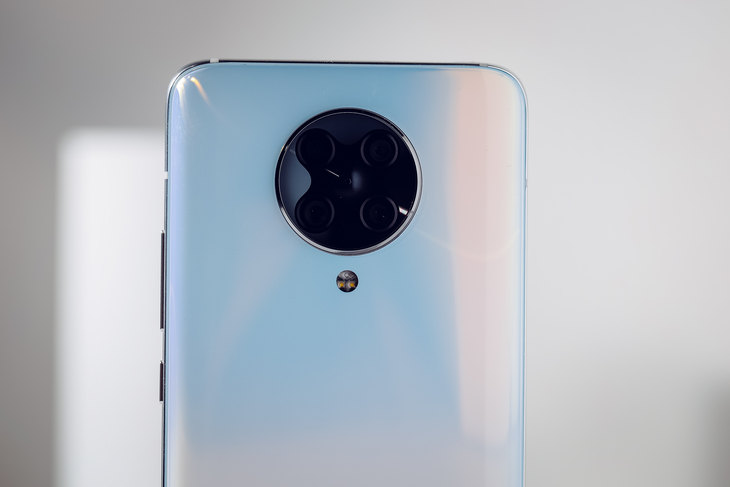 Redmi K30至尊纪念版的背面与此前的Redmi K30系列一致,配色方面则拥有幕月白、极夜黑以及薄荷绿三种配色。测试机的配色为幕月白,机身在灯光的照耀下会反射出绚丽的光影效果,非常的好看。