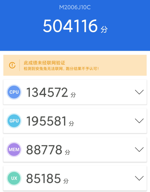 经过性能测试,Redmi K30至尊纪念版的最终得分为504116分,也达到了旗舰级别的水平。