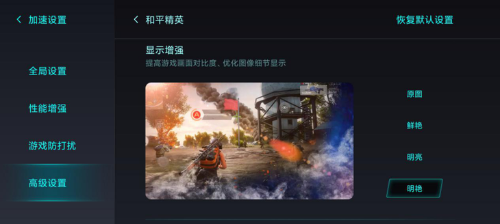 手机支持游戏加速功能,可以针对游戏进行针对性的设置,从系统层面对不同的游戏进行专项的优化,包括跟手性、显示增强等设置,为游戏带来更出色的体验。