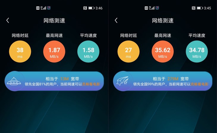 在手机通讯方面,华为nova7 Pro可以说打造了标杆级5G通信体验,它采用7nm麒麟985 5G SoC芯片,支持更多5G频段覆盖、支持5G双卡功能,5G信号更稳定,速度更快更智能。上面是我的实测数据,相比4G时,平均1.58MB/S的平均速度,华为nova7 Pro在5G网络下,平均速度高达34.78MB/S,可见其5G网速有多快。