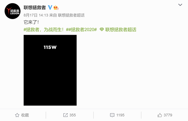 8月17日,联想拯救者官微预告,某款“115W”新品将在本月25日发布,显然这就是大家期待已久的新品R7000P RTX2060版。