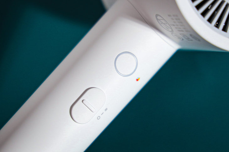 米家负离子速干吹风机H300在切换温度时非常方便,只需轻轻按一下温度按键即可。值得一提的是,在温度按键的外圈还设计有一个三色LED,在冷风时圆圈显示为蓝色,温风和热风时圆圈分别为黄色和红色,非常贴心之余也极具科技感。
