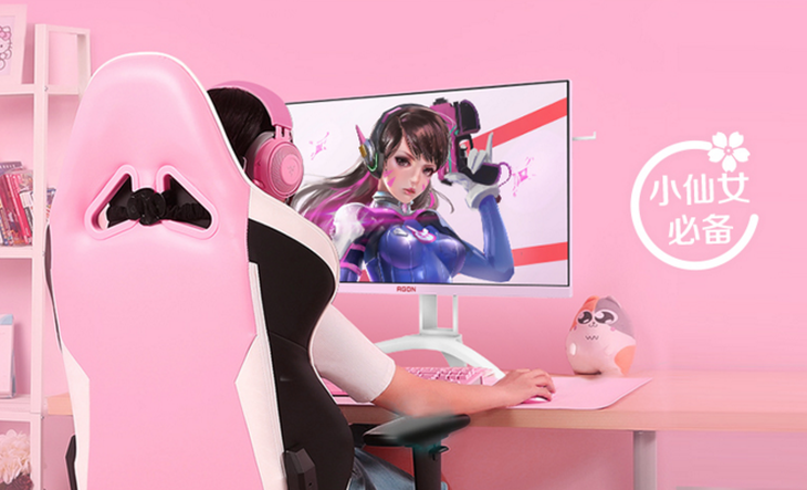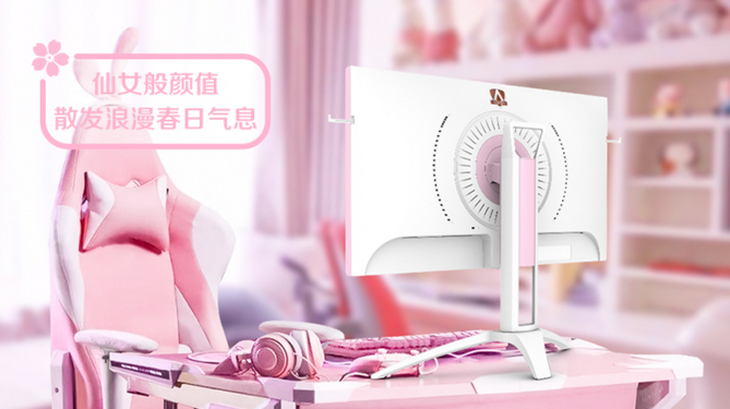 看到爱攻AG273FXR电竞显示器的领先眼,相信多数人都会被它楚楚动人的幻影粉外观配色所吸引。它是如此的美,以至于将它摆放在桌面上,能够很好地衬托出女性玩家们青春、靓丽、可爱、动人等诸多方面的魅力风采。