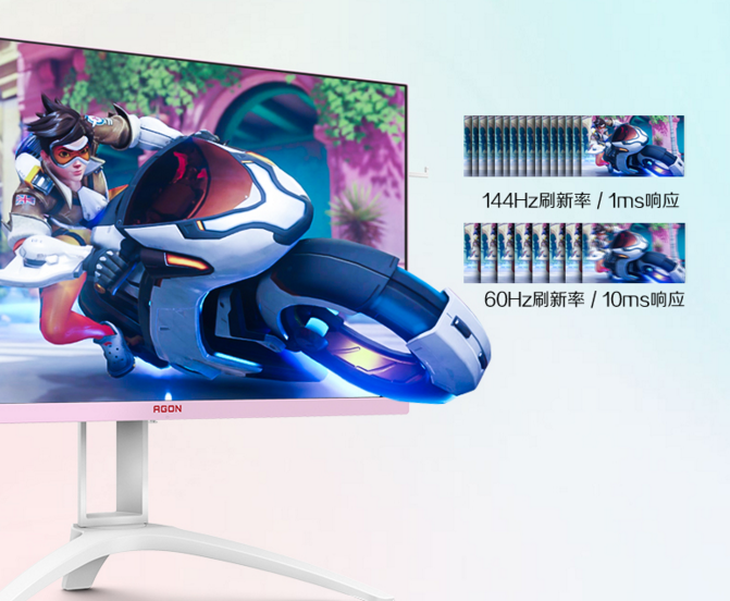 除了颜值,这款电竞显示器还精选了一块144Hz刷新率、1ms MPRT动态画面响应时间的IPS屏幕,支持AMD FreeSync Premium技术以及HDR技术,能够呈现出更逼真、更流畅的游戏画面,伴女性玩家们尽情施展身手,畅享游戏欢乐。
