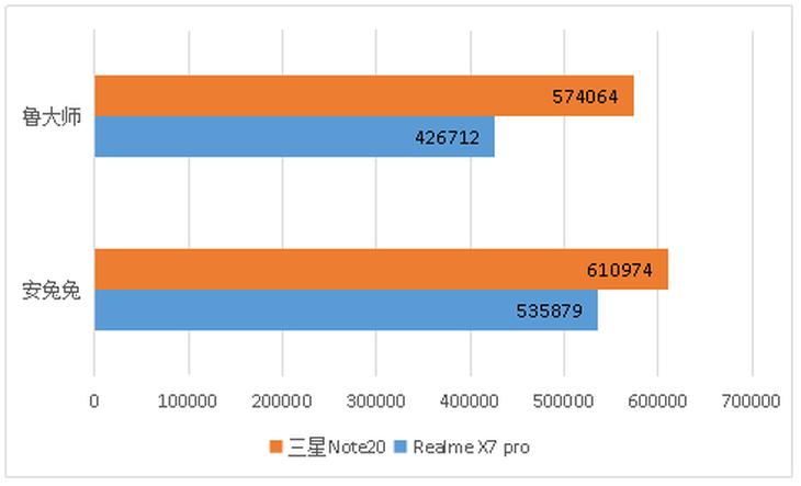由于下半年发布的新机仍有不少采用骁龙865处理器,因此骁龙865plus的选择余地更小,挑选了较新发布的三星Note20。安兔兔得分61万。在鲁大师测试中,也取得了57万的高分。