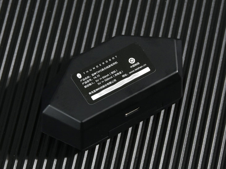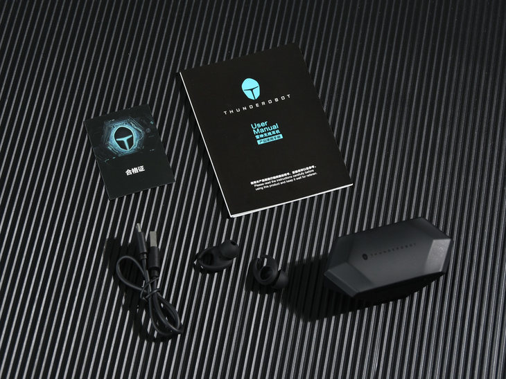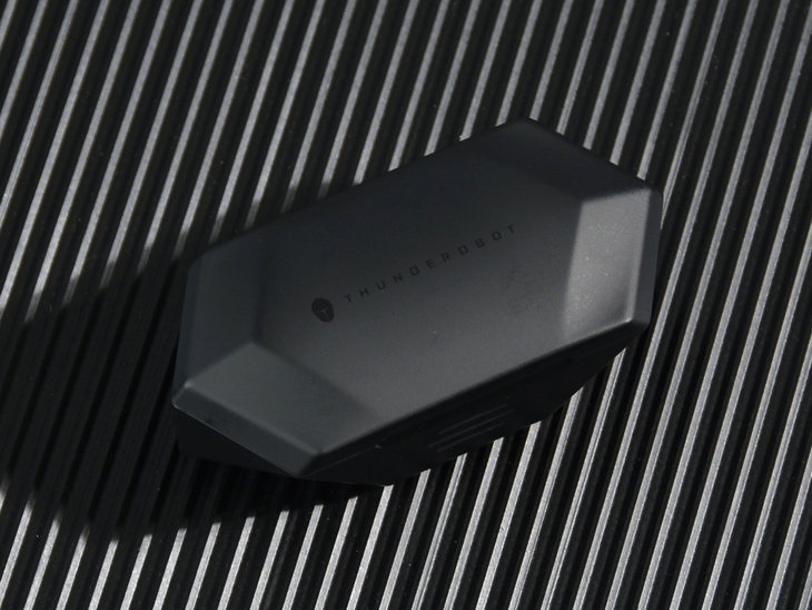 充电盒采用了百搭的黑色设计,盒盖上面设计有ThundeRobot雷神的LOGO。