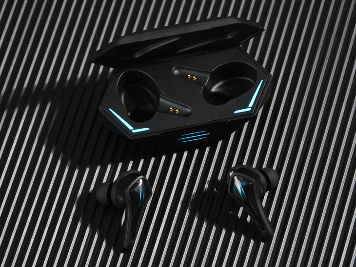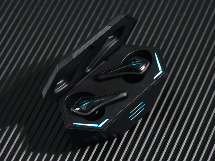再来看耳机,雷神TWS真无线游戏耳机HL10的造型也非常的有型,很有科技感。
