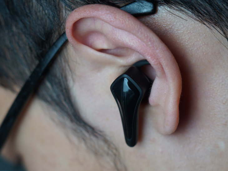 雷神TWS真无线游戏耳机HL10还采用了人体工学设计,环形胶圈能够将耳机很好地固定在耳廓上面。
