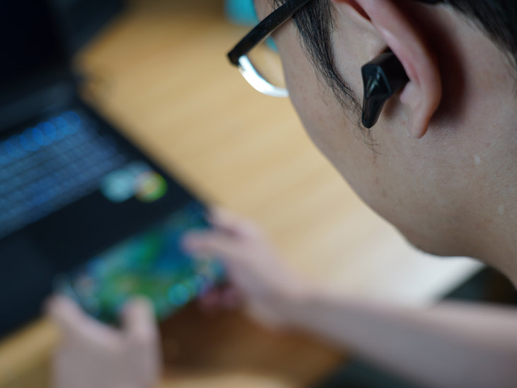 在续航能力上,这款无线游戏耳机与官方标注的时间基本一致。游戏模式下大概能坚持3.5小时左右,续航虽称不上业界优异,但是也属于较好的水平了。再搭配上充电盒使用,对于笔者这种轻度手游玩家来说,基本上充满一次电能够用个3~5天的时间。