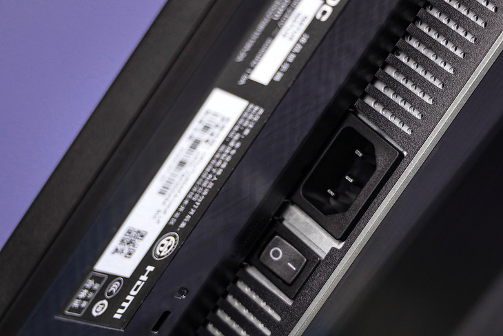 这款商务显示器电源接口的傍边设计了一个电源开关。