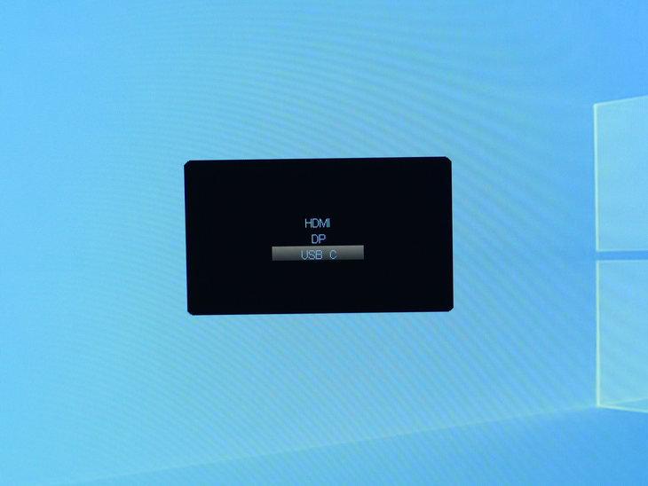 按下信号输入按键,屏幕中央区域会调出信号输入选择界面。从图中可以看出,笔者正在连接的是Type-C接口。