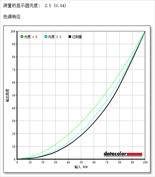 测试小结:这款显示器实际的伽马曲线和理想值差距稍大,表现一般。