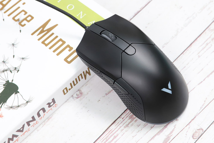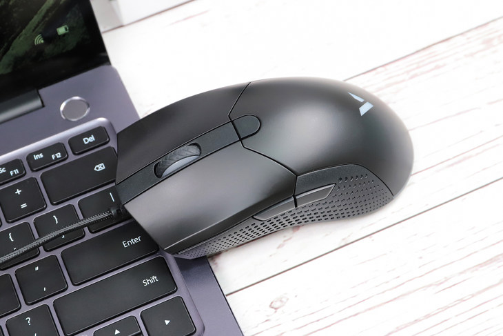 鼠标表面采用磨砂哑光喷漆工艺,触感顺滑细腻,能够获得不错的手感。这种材质也有一定的防滑作用,不过对指纹、汗液等抵抗能力不是很好。