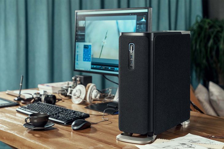 Colorful ProMaster H1采用了黑色珠光绒布材质,整体造型简约干净,并没有采用炫酷的光效和浮夸的线条造型,作为生产力“神器”,自然不会过渡的喧宾夺主,搭配静音的运行效果,不打扰创意制作人的每一丝灵感。
