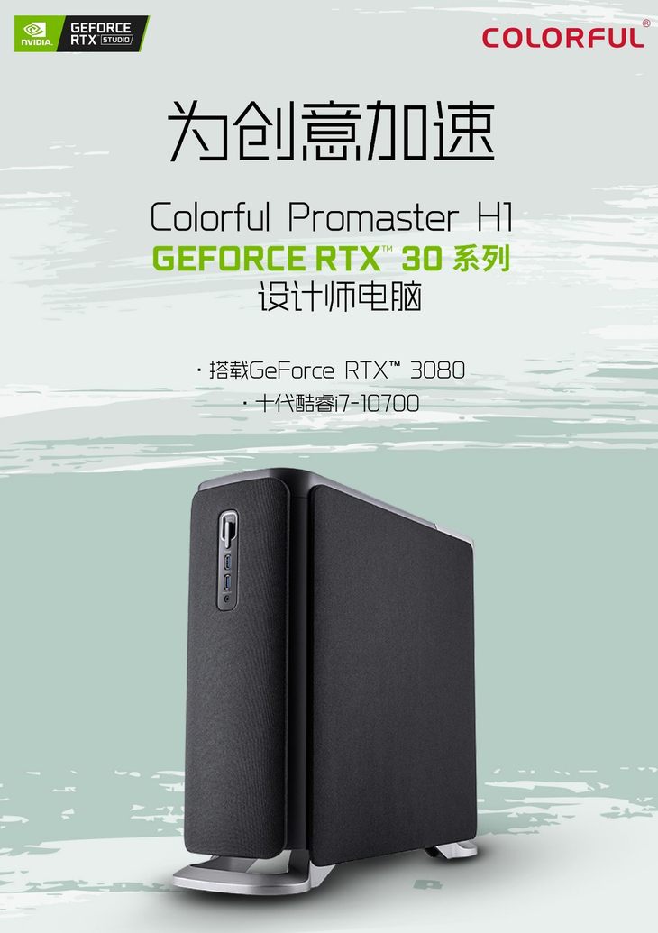 随着NVIDIA正式发布了RTX30系列显卡,全新的NVIDIA安培架构在制程、性能上有了双重飞跃提升,短时间内在市场中引起了一番讨论。Colorful ProMaster H1创意设计师电脑作为优选通过NVIDIA RTX Studio认证的国内大陆品牌产品,不仅获得了德国2020红点奖,同时也领先时间同步升级了搭载较新RTX30系列显卡的整机产品。