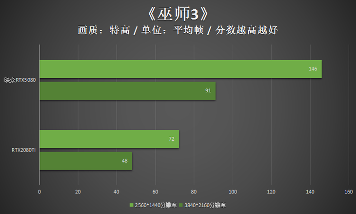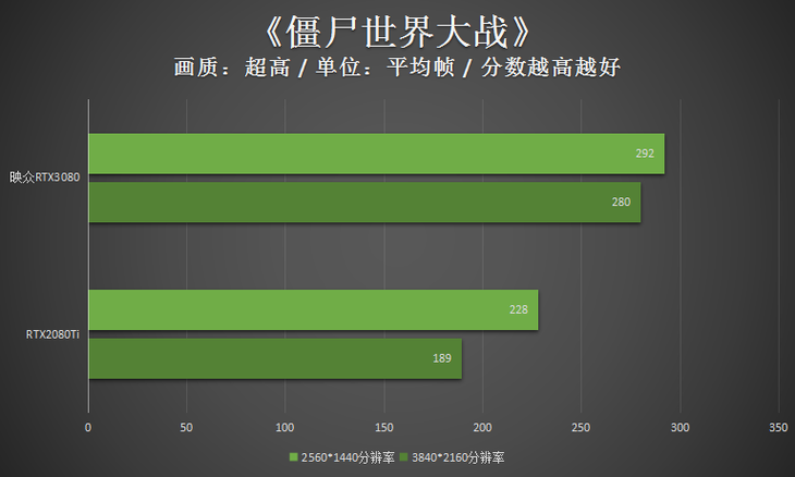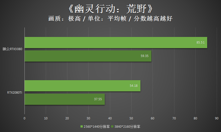 此次测试,为了对比的映众RTX3080冰龙超级版显卡的成绩,笔者还加入了一款RTX2080Ti显卡的成绩。这款RTX2080Ti显卡的GPU频率为1350MHz,Boost频率为1590MHz,显存等效频率为14000MHz。