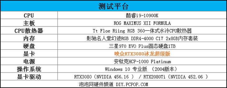 为了充分展现映众RTX3080冰龙超级版显卡的性能,笔者组建了一套性能出色的酷睿i9测试平台。