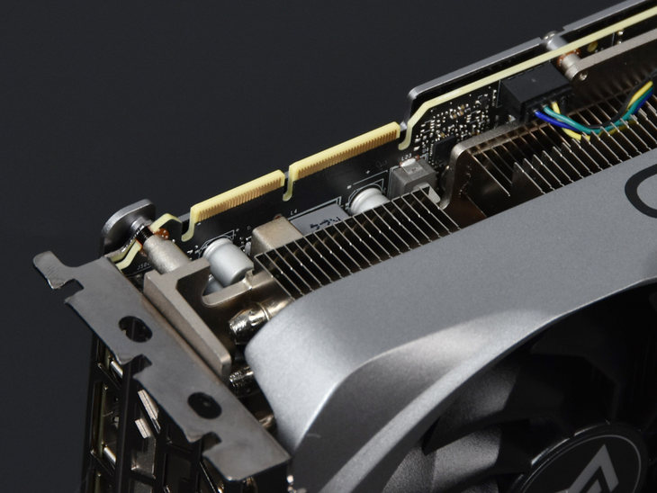 这款显卡采用了公版PCB设计,GPU左右周围共设计了18相供电,并且搭配全封闭式电感、日系富士通FP固态电容等高品质元器件,用料值得信赖。