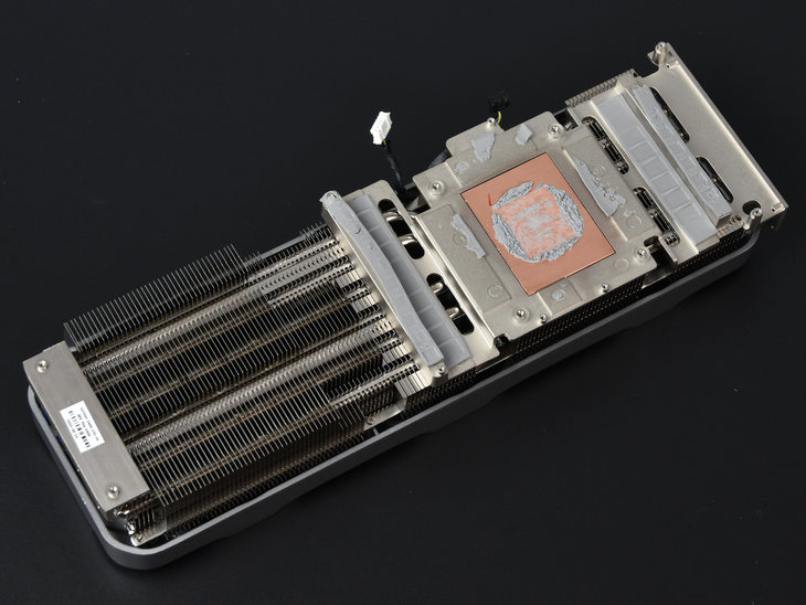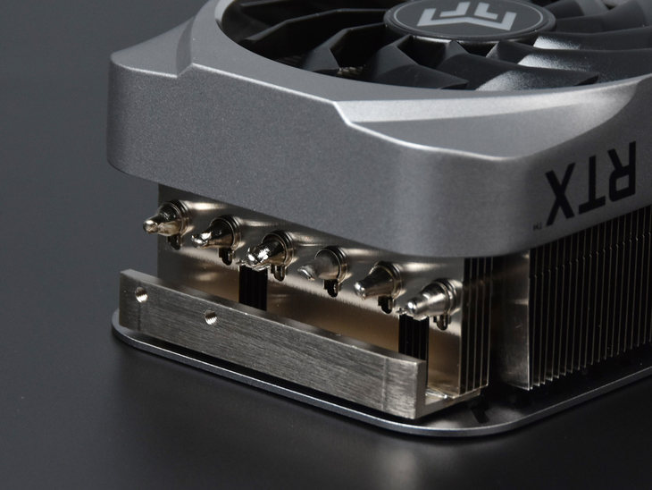 寒光星散热器的金属主体部分采用了显卡/供电一体压铸件散热模块,搭配有6根镀镍复合热管,GPU底座采用了纯铜打造的均热板。