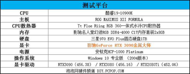 为了充分展现影驰RTX3090金属大师显卡的性能,笔者组建了一套性能出色的酷睿i9测试平台。