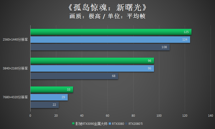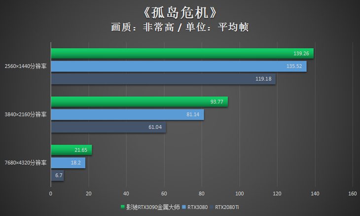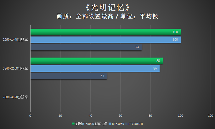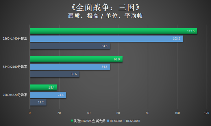 游戏测试小结:相比不久前发布的RTX3080显卡,影驰RTX3090金属大师在游戏性能表现方面,在有的游戏里提升较大,在有的游戏里则提升不大。