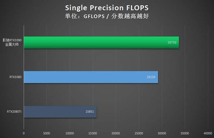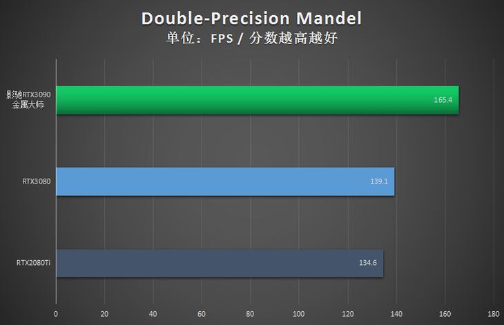 此次测试,为了对比影驰RTX3090金属大师显卡的成绩,笔者还加入了一款RTX3080非公版显卡和一款RTX2080Ti非公版显卡的成绩。这款RTX3080非公版显卡与创始人版保持了一致,GPU频率为1440MHz,Boost频率为1710MHz,显存等效频率为19000MHz。这款RTX2080Ti非公版显卡的GPU频率为1350MHz,Boost频率为1590MHz,显存等效频率为14000MHz。