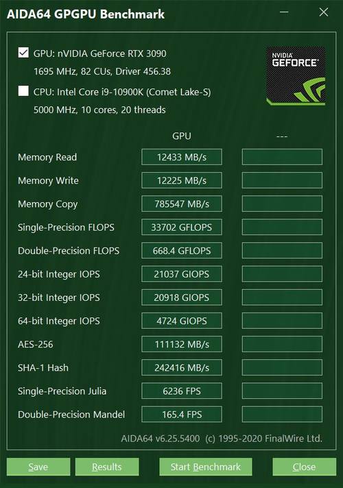 接下来,笔者利用AIDA64这款软件自带的GPGPU Benchmark程序,继续对影驰RTX3090金属大师显卡进行了GPU运算性能测试。