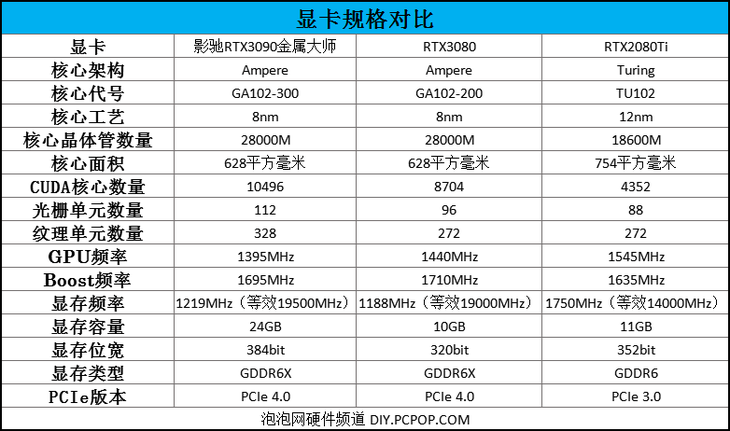 晶体管虽然大幅提升,但是凭借着更先进的8nm工艺制程,RTX3090显卡GPU的芯片面积只有628平方毫米,比RTX2080Ti的还要小,这个对于散热来说无疑是一大利好。