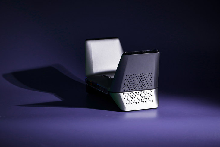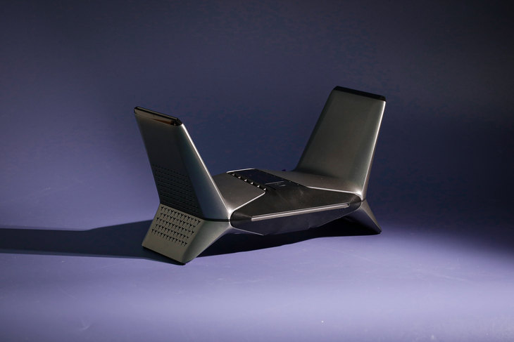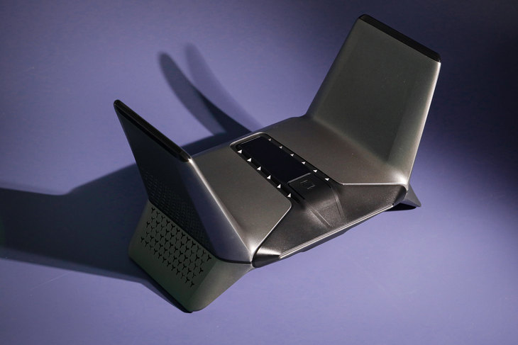 在外观设计方面,攀升MIFON X1电竞路由器可以说是“别具一格”,不仅炫酷还非常霸气,就像是天外来的外星飞船,整体外型也区别于市面上大多数路由器,电竞感十足。