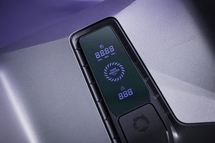 攀升MIFON X1电竞路由器的产品顶部还配有一块智能动态屏幕,与外观搭配起来非常协调,尤其是在连接上电源后整体电竞感更加明显。通过这块屏幕我们可以直观地查看下载速率,游戏加速状态以及所连接的设备数量。这样我们在游戏或者使用网络的过程中无需通过网页客户端或手机 APP就能直观的了解到此时的网络状况。另外,在屏幕下端还有一个非常明显的“游戏加速”按键,按下便会自动开启游戏QoS优先级功能。