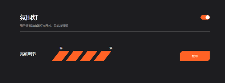 作为一款电竞路由器,怎么少得了炫酷的灯光效果呢?所以当MIFON X1电竞路由器连接上电源后,前方会亮起一道炫丽等灯光,看起来非常有科技感。在连接上网络后还会变幻成白色,并且等效的亮度可通过PC页面或者手机APP进行不同级别的调节。