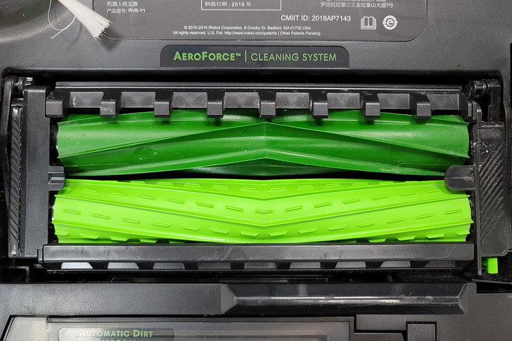 irobot i7采用了双硅胶滚刷,两个滚刷采用了不同的纹理,同时向内测旋转,有点像是旋转的齿轮,这样的设计可以避免滚刷被线绳、头发等缠住,也可以将一些大面积的纸张、碎屑吸入尘盒中。
