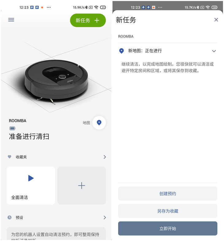 irobot i7的APP功能相对简单一些,对于普通用户而言,使用APP可能只有点击全面清扫这一项功能。