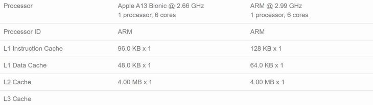 从跑分图也能看到A14芯片的核心参数,可以看到CPU部分的频率接近3.0GHz,缓存部分相比A13芯片有所增加。