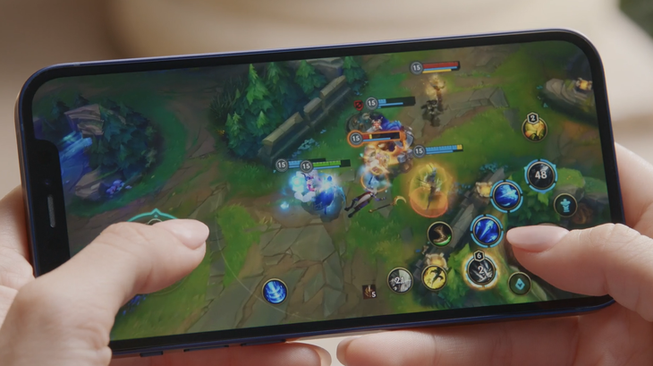 发布会上也演示了《英雄联盟》游戏, 在A14芯片强大性能的支持下,不仅能够保证流畅的游戏体验,还可以看到非常棒的画面细节,即使复杂的团战画面也能及时响应。