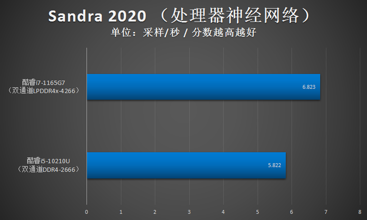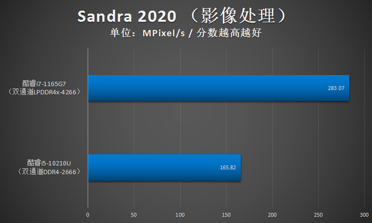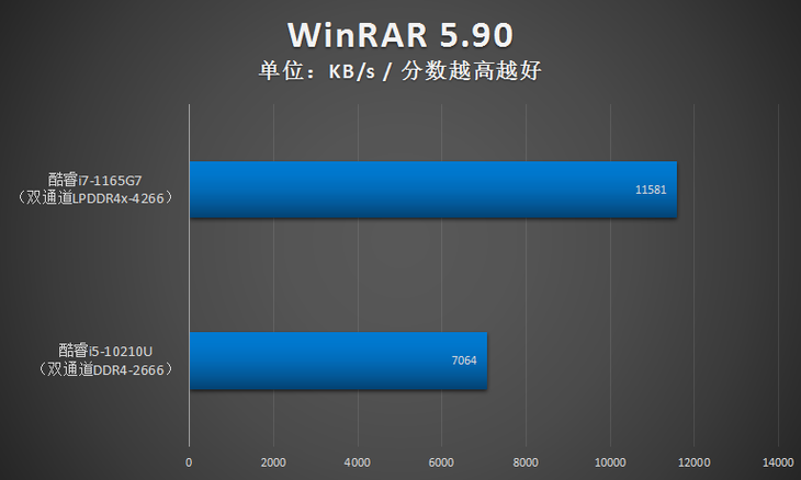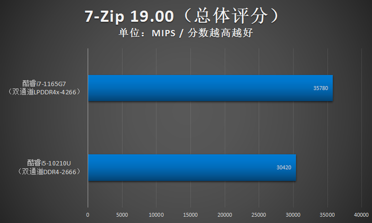 为了对比酷睿i7-1165G7的性能,笔者还加入了酷睿i5-10210U处理器的成绩。测试机选用的是联想小新 Air 14 2019款笔记本。