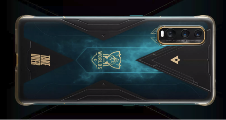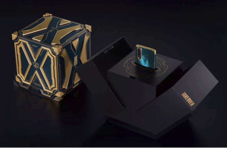OPPO Find X2英雄联盟S10限定版还拥有限定款保护壳,保护壳以黑金色为主,中间为透明的X型设计,当手机戴上保护壳后,更加突出背部的奖杯与迷雾设计。