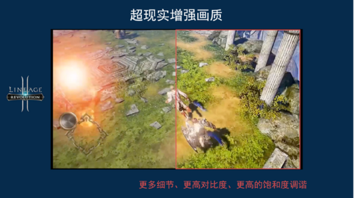 骁龙865移动平台还提供了画质的加分项,那就是超现实增强画质技术,这一技术可以智能的分析游戏每一帧画面,从而智能的针对画面进行优化,调整色彩的饱和度以及细节的清晰度,让画面的观感更加出色。