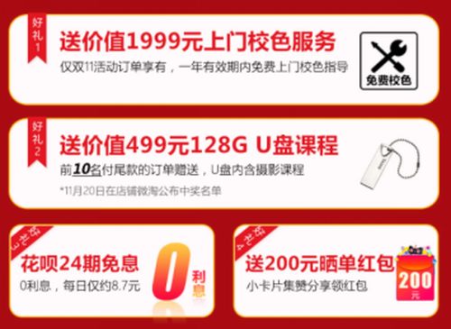 双十一期间,SW系列家族的其他产品同样诚意满满,SW271:日常售价9999,,预售到手8999;SW321C:日常售价:18999,预售到手17599并且SW321C还使用了全新的A.R.T(高级抗反射技术)面板,覆盖特殊的反射涂层,减少屏幕眩光,能够更真实的模拟纸张效果; 两款“大哥”同样参与10月21~10月31预售,也均额外赠送双十一福利:价值1999一年内上门校色服务。最后提醒一句,参加预售的朋友不要忘记11月1日付尾款哦。