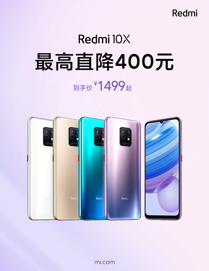 Redmi 10X目前在小米商城、京东等平台均可预定,在小米商城预定可获赠碎屏保障服务。在京东平台售价1599元,预定100元可抵200元,领券还能减100元,到手价只需1399元(6GB+128GB)。