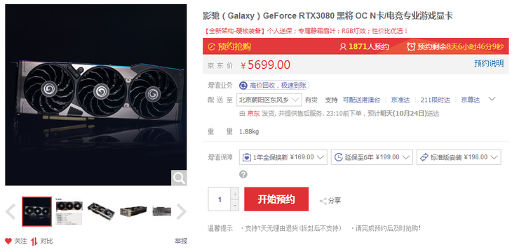 影驰RTX3080黑将显卡>>购买链接