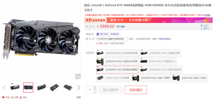 目前京东商城上面映众RTX3080冰龙超级版显卡处于缺货状态,喜欢的玩家们可以密切关注它的铺货信息。