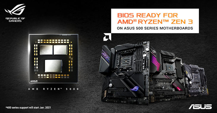目前,所有华硕500系列主板(X570, B550和A520)均已推出了新版BIOS,实现了对AMD Ryzen Zen 3架构处理器的支持,广大玩家们可以到华硕官方网站进行下载升级。