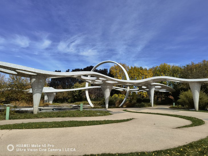 一般来说,很多手机厂商对于超广角镜头的配置最主要的是满足“超广”这个需求,但从华为Mate40 Pro实拍的样片中能明显看出,华为这次给到的不仅仅是更广的焦段,同时在画质表现上也有惊喜。上图截图我特意选择了画面边缘位置,大多数镜头下,即便是专业的单反/微单镜头,超广角镜头的边缘画质很容易出现偏肉甚至画面模糊的情况,但华为Mate40 Pro超广角镜头所拍照片的边缘画质依然十分锐利、扎实,这对于手机镜头来说实属不易。当然,这与华为Mate40 Pro在超广角镜头使用了1/1.53英寸感光元件也有关系,并且值得一提的是,超广角镜头的畸变控制非常不错,没有明显的变形情况出现。