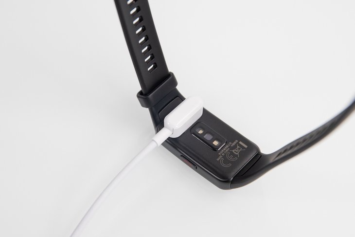 荣耀手环6采用磁吸式的USB充电器,不需要专门的充电底座,闲暇碎片时间摘下即可快速充电,而且它依靠低功耗芯片及智能节电算法,在心率常开、夜间使用科学睡眠、每周平均锻炼 60 分钟、开启消息通知的重度场景下,仍然可以提供长达10天的续航。