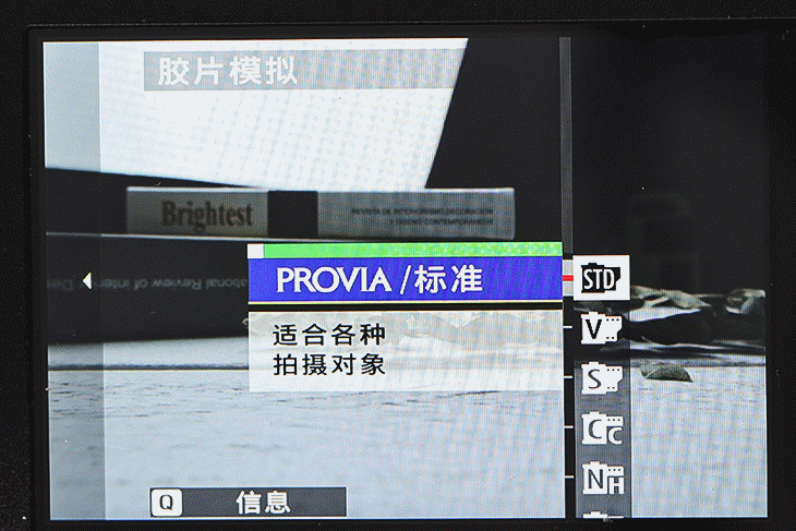 比如在选择不同的胶片模拟时可以直接确认画面的色彩